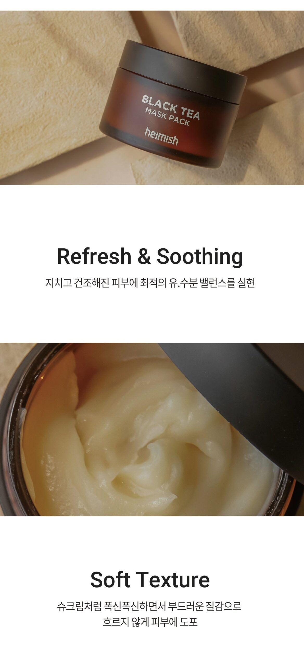 I recently got my hands on the heimish Black Tea Mask Pack, and I was blown away by how beautifully it arrived! The packaging is so sleek—it’s this matte black with elegant gold lettering that feels luxurious before you even open it. When I unboxed it, the mask itself was nestled in a snug fit inside, which made me feel like I’d found something really special. It’s like they thought of everything; there’s a little spatula included for application too! You don’t have to worry about dipping your fingers in or getting messy. Honestly, it’s presented almost like a gift—you just wanna display it on your bathroom shelf instead of hiding it away! Really sets the mood for some pampering first thing in the morning while helping to chase off those puffy vibes.