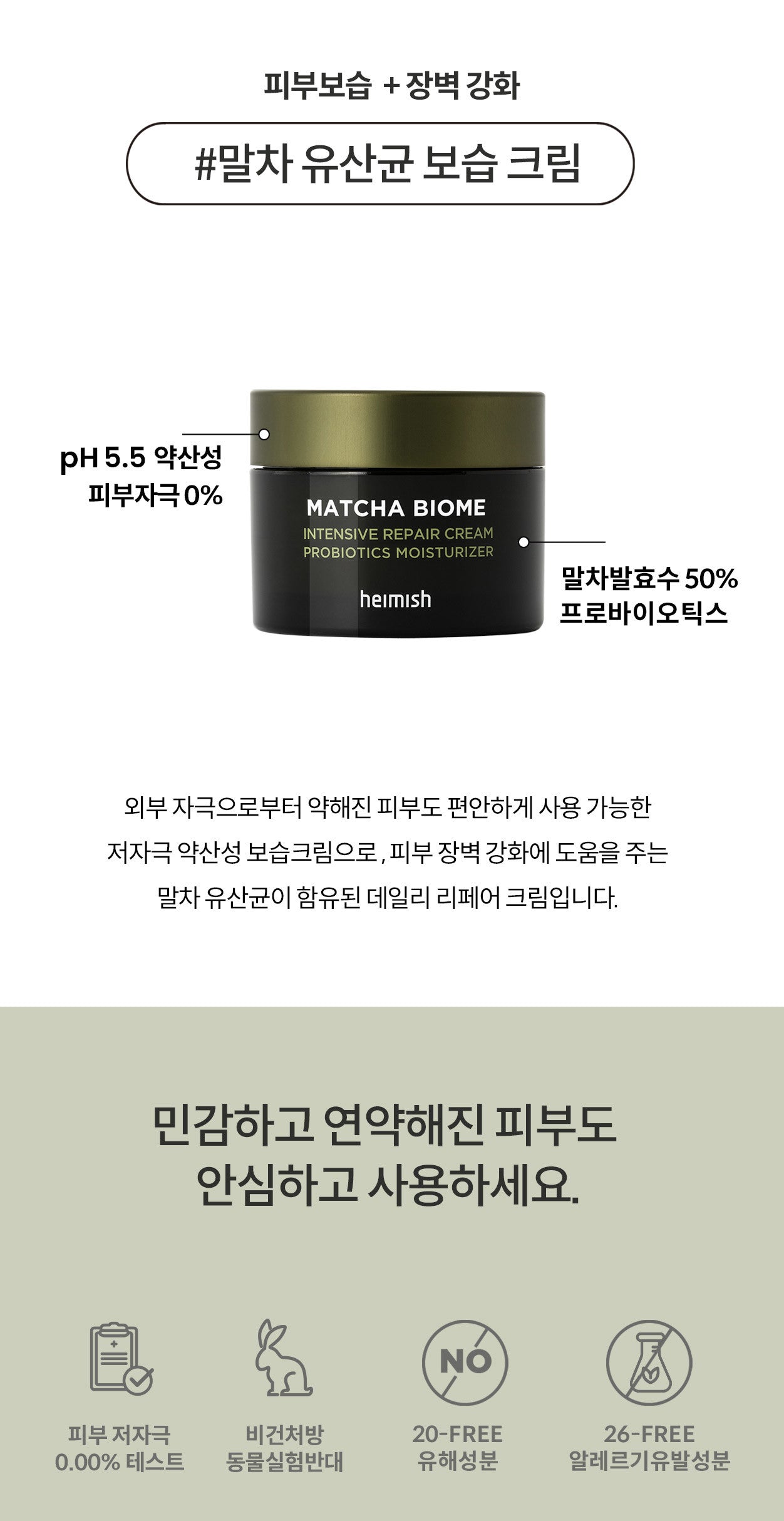 It is a hypoallergenic weakly acidic moisturizing cream that can be comfortably used on skin weakened by external stimuli. It is a daily repair cream containing matcha lactobacillus that helps strengthen the skin barrier.