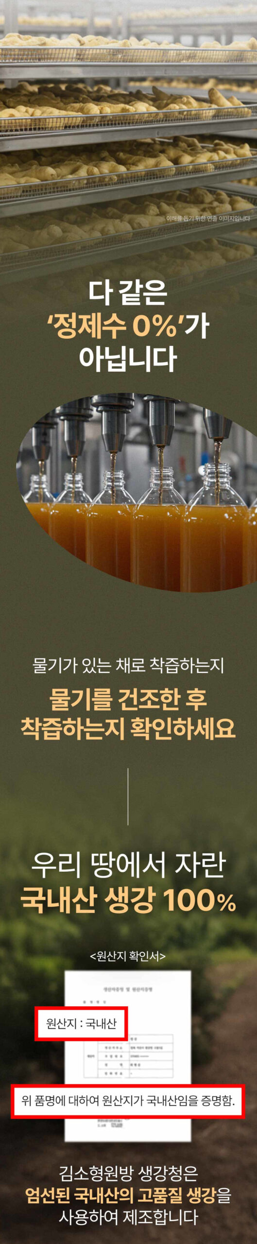 Pure concentrate: About 1 kg of fresh Korean ginger pressed into each 500 ml bottle — no water added.
