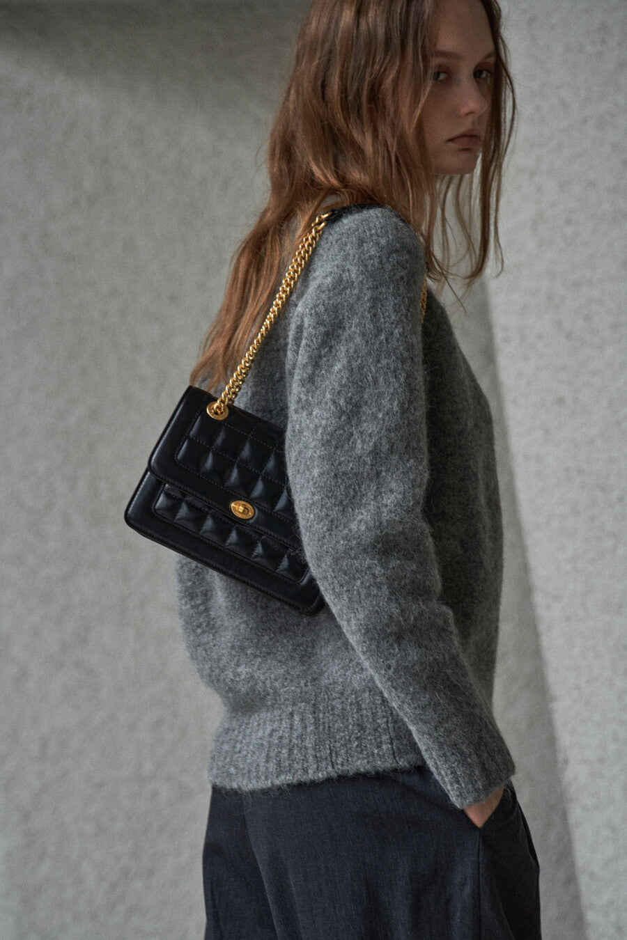 This bag is a testament to high-fashion creativity, blending various textures and materials for a unique, three-dimensional design. It features a harmonious mix of voluminous smooth leather, intricately crinkled leather, premium Italian suede, and exquisite tweed fabric from Japan’s renowned ‘STYLE M’ company. Each material is carefully chosen for its luxurious texture and quality, contributing to the bag’s distinguished appearance.