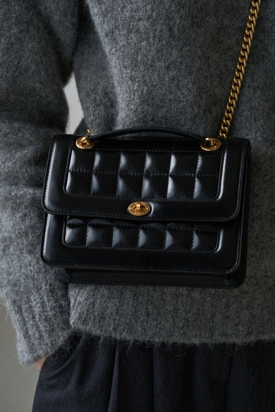 Delight in the intricate craftsmanship of the HERVÉ Damier Flap Bag, showcasing an elegant quilted damier (lattice) pattern. Adorned with the distinctive Hervé logo, the turnlock and eyelets are meticulously engraved, enhancing the bag’s allure. The chain, plated in a sophisticated matte gold, adds a touch of opulence while maintaining a lightweight feel, perfecting the bag’s overall aesthetic.
