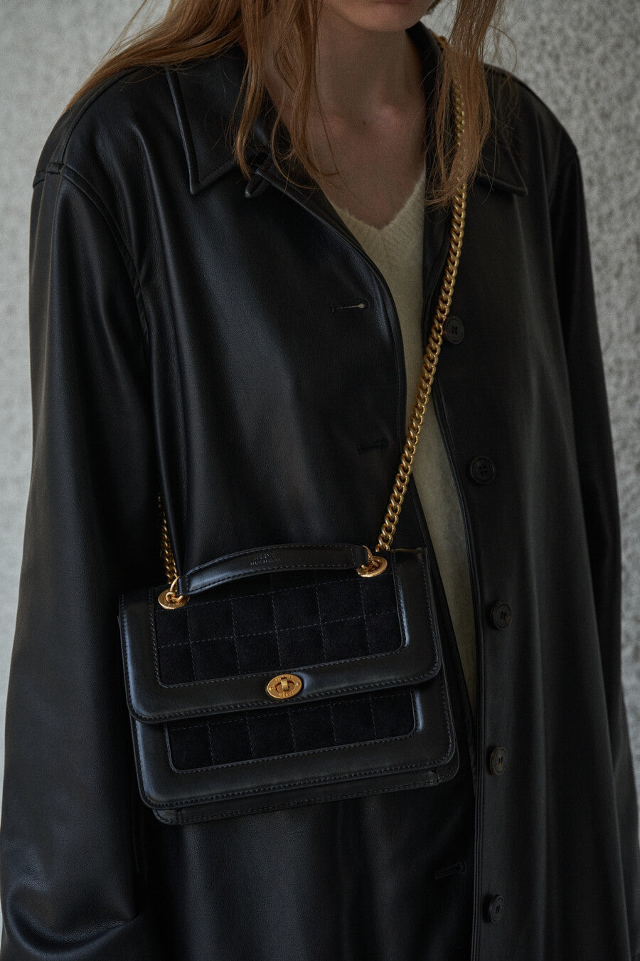 HERVÉ takes pride in its commitment to using only the highest quality natural leather, hand-selected by seasoned experts. The NO EMBOSSED LEATHER, CRINKLE LEATHER, and ITALIAN SUEDE in the DAMIER BAG are chosen for their smooth, soft, yet durable texture. The addition of Japanese tweed from ‘STYLE M’ elevates the bag with classic, high-quality fabric, renowned globally.