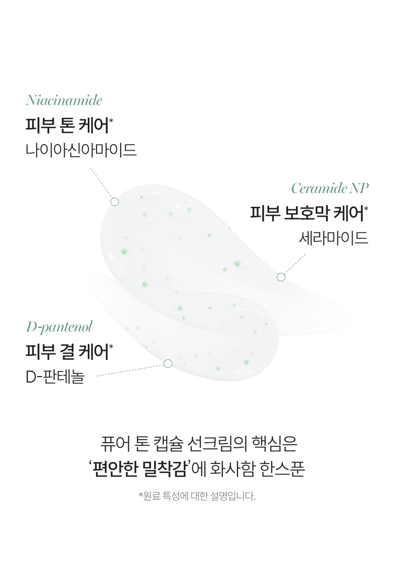 At the heart of the Pure Tone Capsule Sun Cream lies a powerful blend of skin-loving ingredients, meticulously chosen to enhance your skin’s health and radiance.