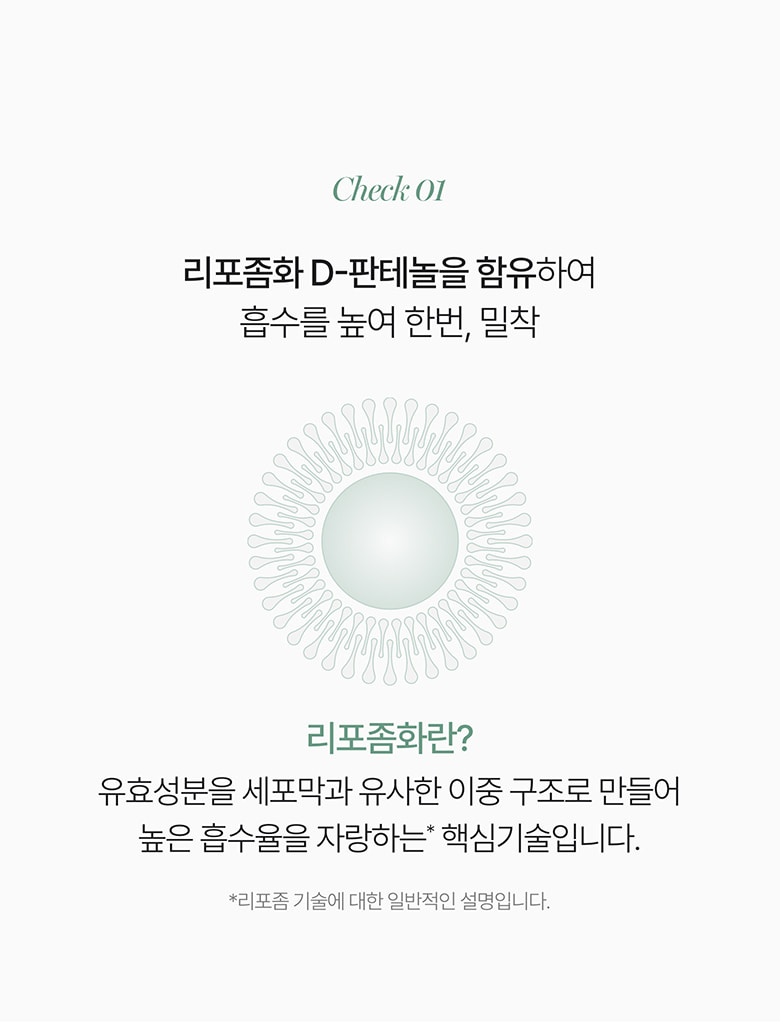 Liposomalization is a core technology that creates a double-layered structure, similar to cell membranes, for active ingredients. This unique design boasts high absorption rates, allowing ingredients to be delivered effectively to the skin.