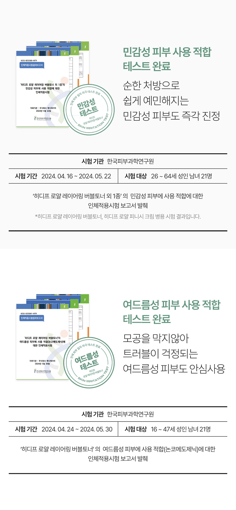 | Korea Institute of Dermatological Sciences | 2024.04.24 ~ 2024.05.30 | 21 adult men and women aged 16-47 |
