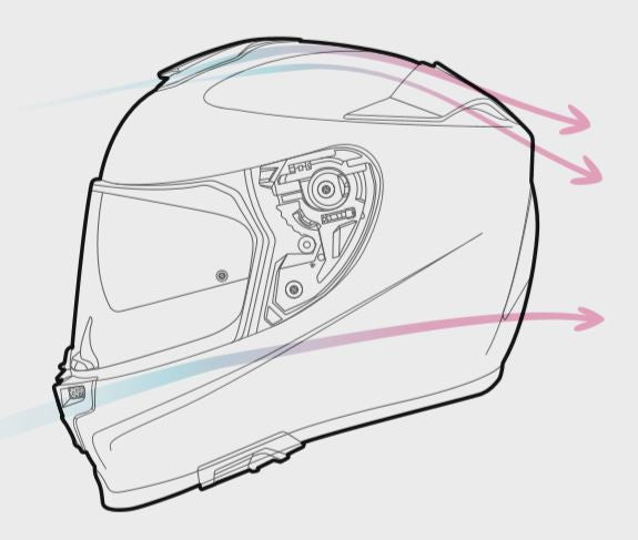 The helmet is equipped with a dual top band ventilation system, efficiently circulating air through simultaneous intake and exhaust vents. This innovative airflow control, complemented by an ACS (Advanced Channeling System), ensures a cool and comfortable ride, whether on highways or racetracks.