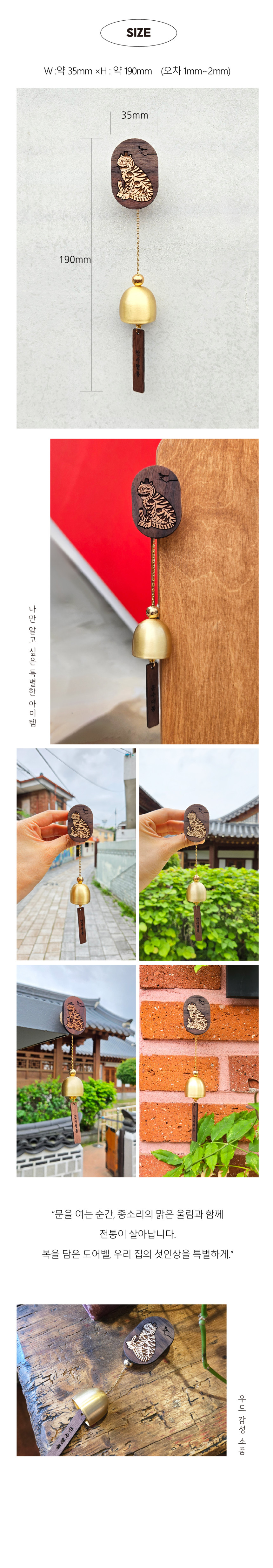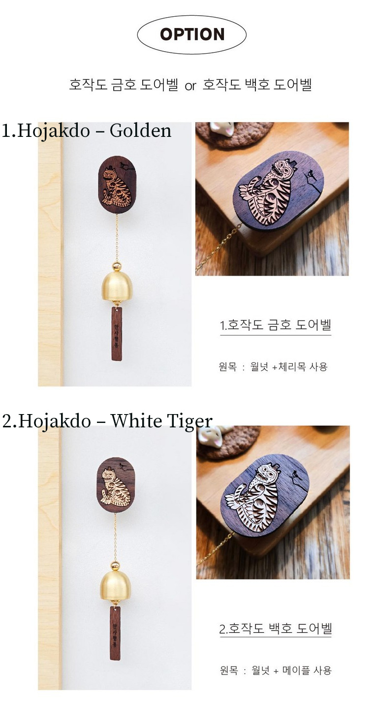 Welcome guests with the delightful sound of this Hojagdo (Tiger and Magpie) themed doorbell wind chime from Design Sohaeng. This charming piece combines traditional Korean folk art with functional home decor.