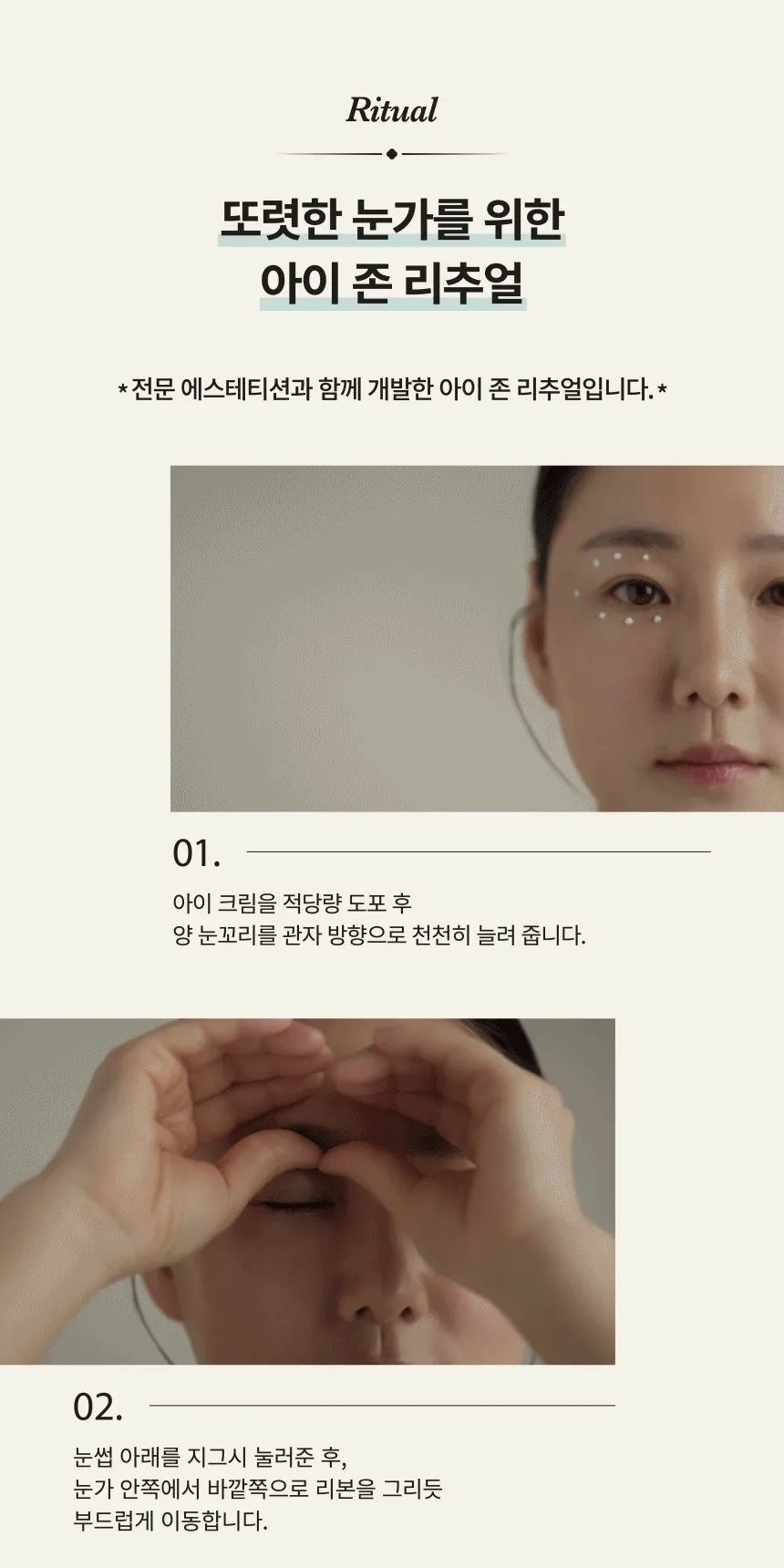 - After cleansing and toning your skin, dispense an appropriate amount of the eye cream.