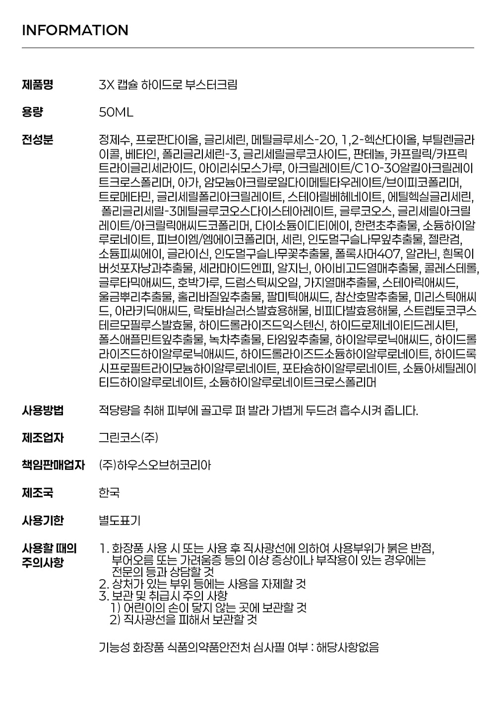| Product Name | HOUSE OF HUR 3X Capsule Hydro Booster Cream |