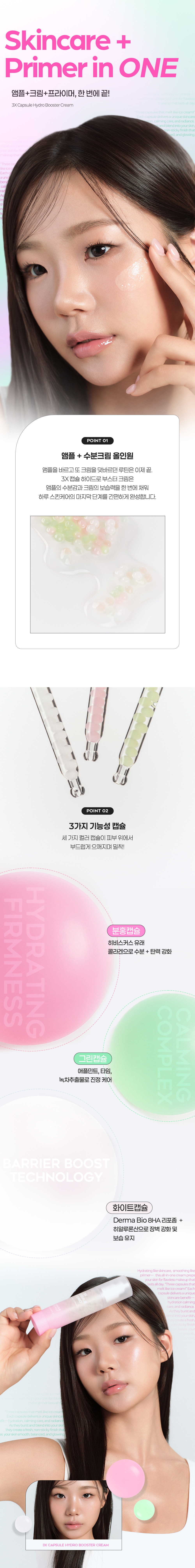 At the heart of the 3X Capsule Hydro Booster Cream lies its revolutionary formulation featuring visible, delicate capsules suspended in a lightweight, refreshing gel. These micro-capsules burst upon application, releasing a concentrated blend of hydrating ingredients directly onto your skin. This ensures maximum potency and freshness, providing: