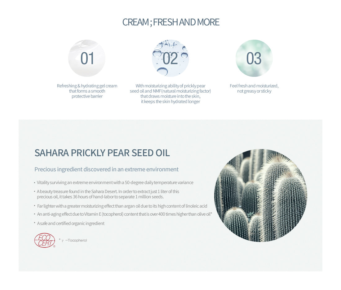 – With moisturizing ability of prickly pear seed oil and NMF(natural moisturizing factor) that draws moisture into the skin, it keeps the skin hydrated longer