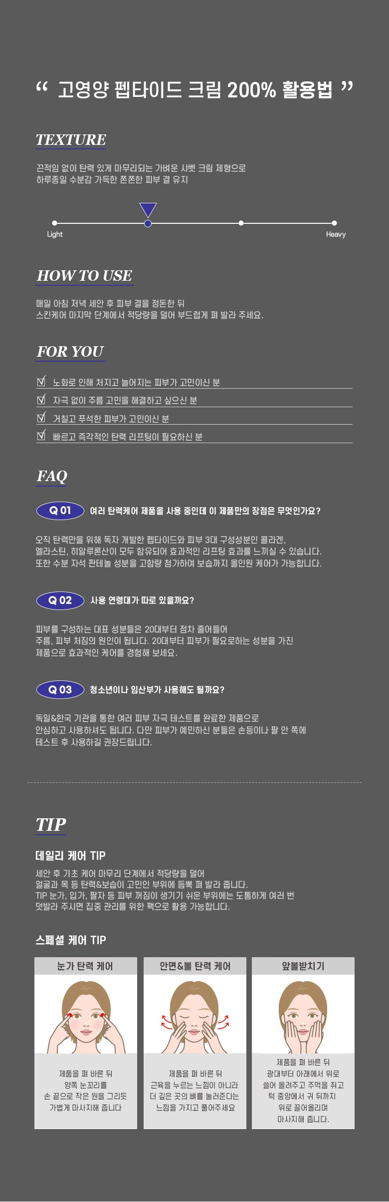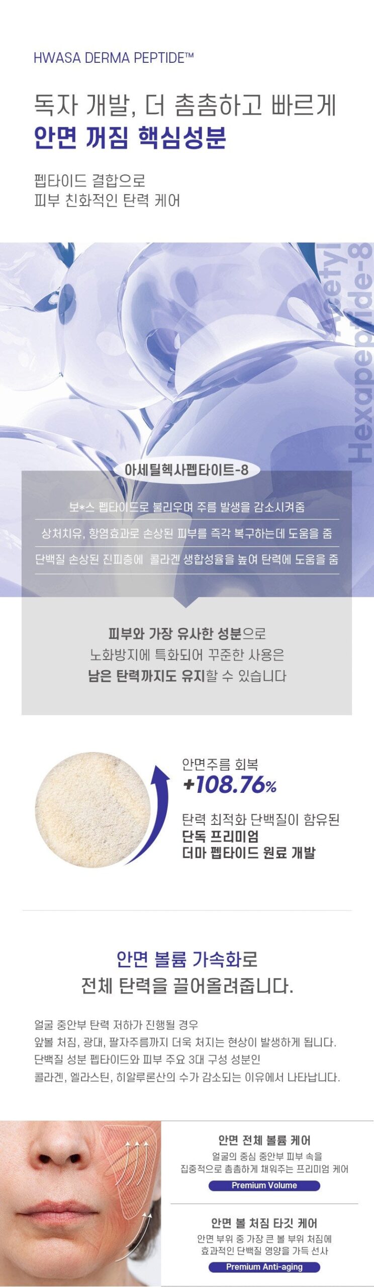 - A proprietary ingredient developed for facial sagging, offering skin-friendly elasticity care through a peptide combination.