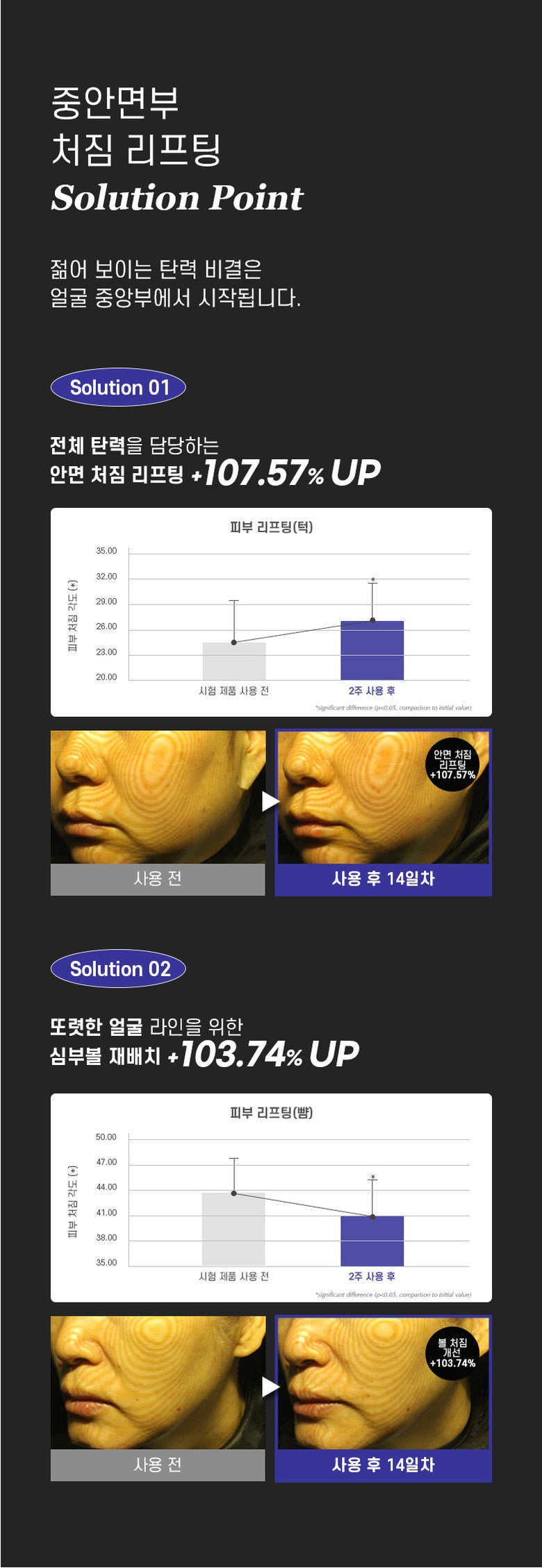 - Facial Lifting: Increases skin lifting by 107.57%.
