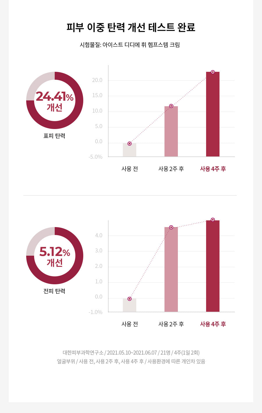 Additionally, epidermal elasticity improved by 24.41%, while overall skin elasticity increased by 5.12%.
