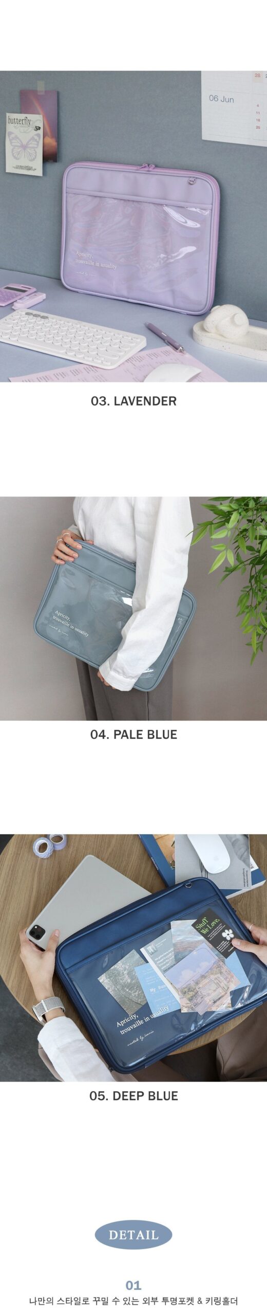 01. External transparent pocket and key ring holder that can be decorated according to your own style
