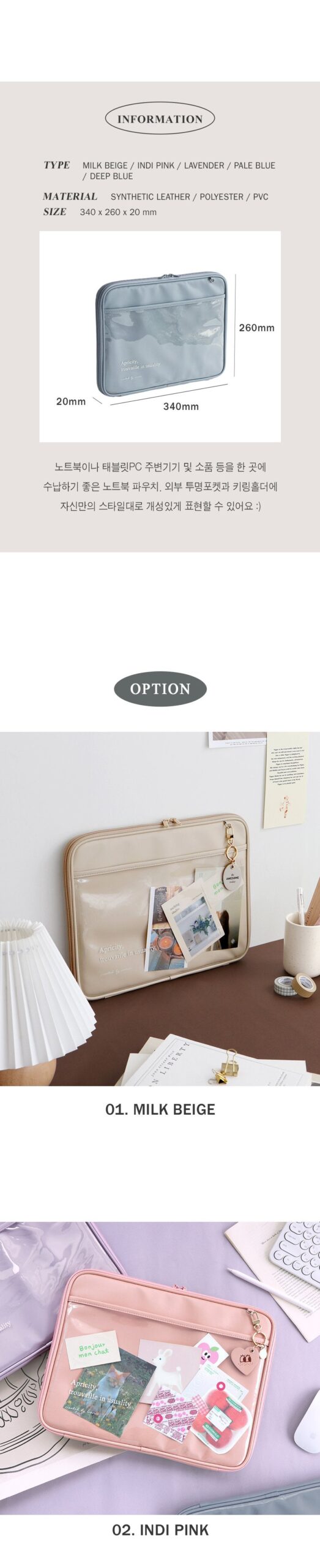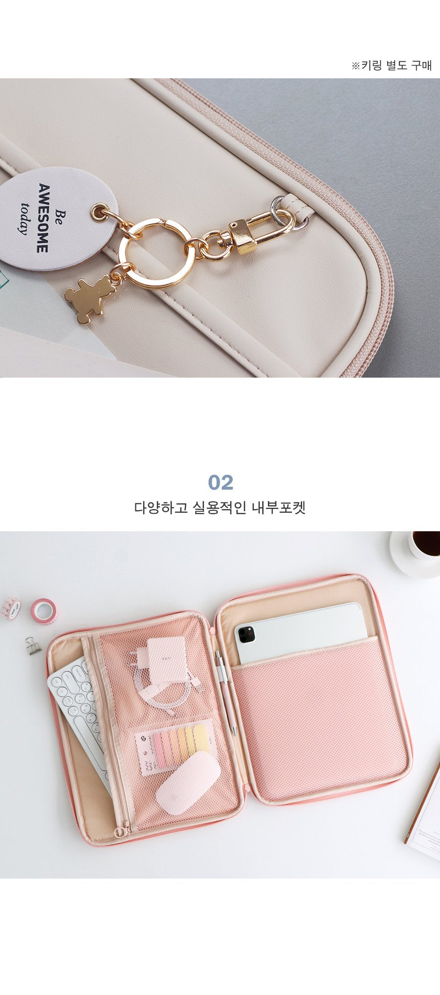 01. External transparent pocket and key ring holder that can be decorated according to your own style