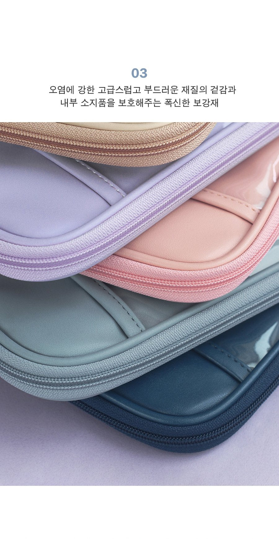 03. Luxurious and soft outer material that is resistant to contamination and soft reinforcement that protects internal belongings