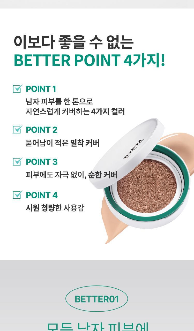 This cushion is crafted with 3 types of powders to perfectly adhere to men’s curved facial contours.