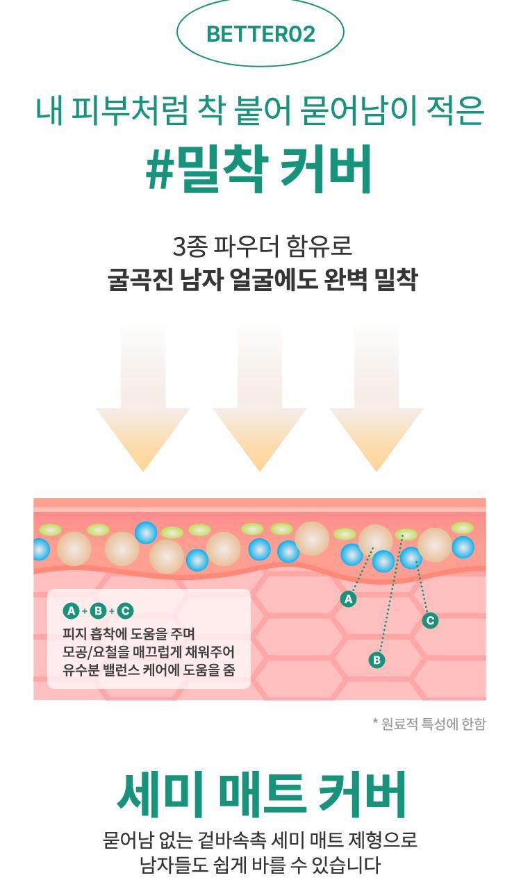 This cushion is crafted with 3 types of powders to perfectly adhere to men’s curved facial contours.