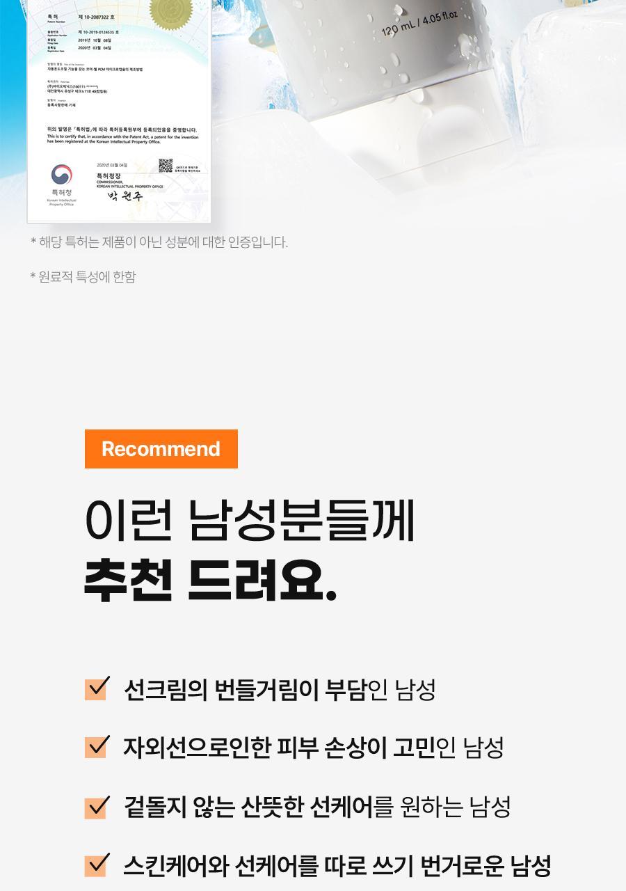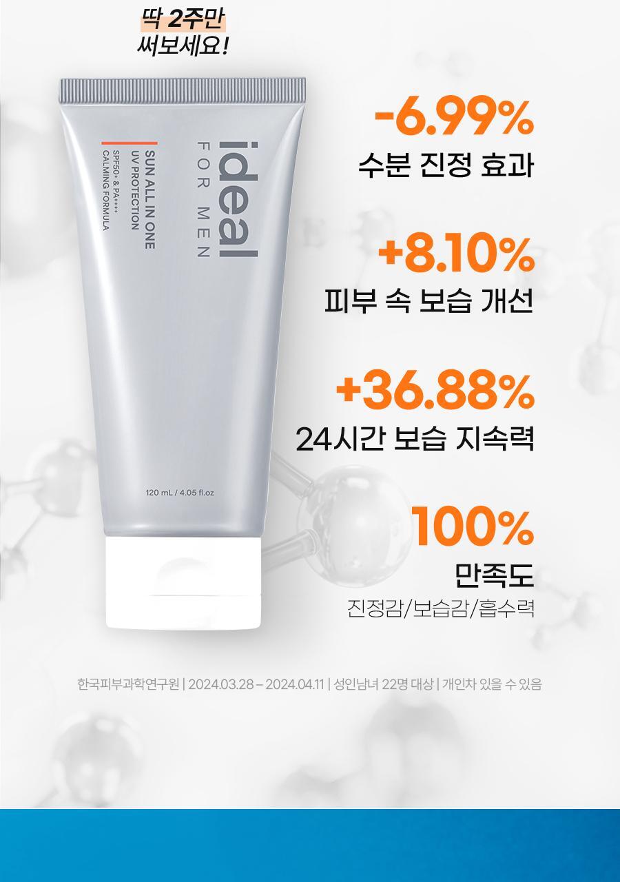 After washing and shaving, apply an appropriate amount evenly along the skin texture. Gently pat to enhance absorption. Use before heading out for optimal UV protection and hydration throughout the day.