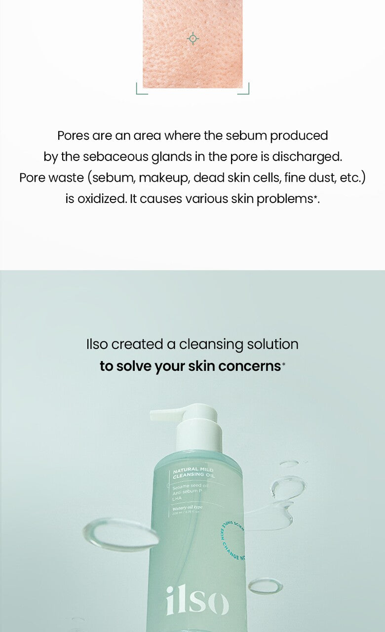 It is Ilso’s cleansing oil that solves skin problems by cleaning the clogged pores with impurities, excess dead skin cells, and sebum.