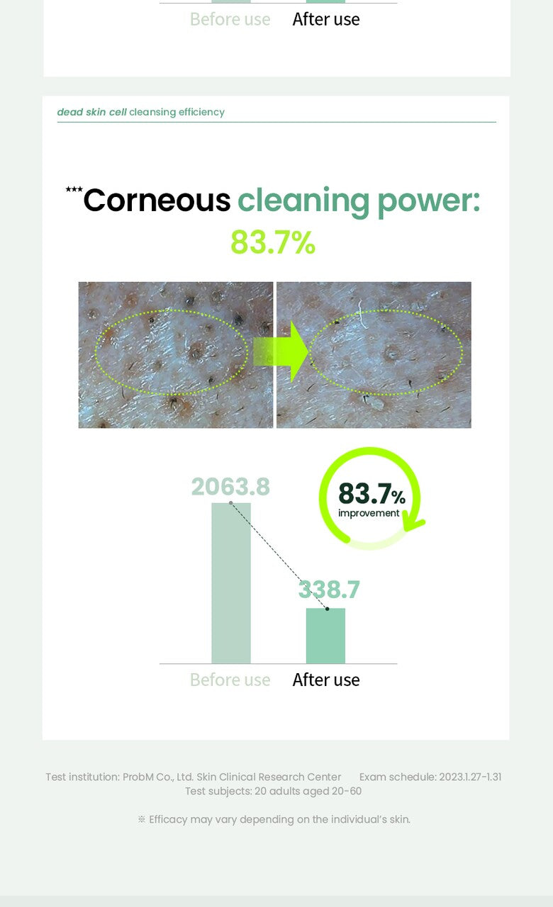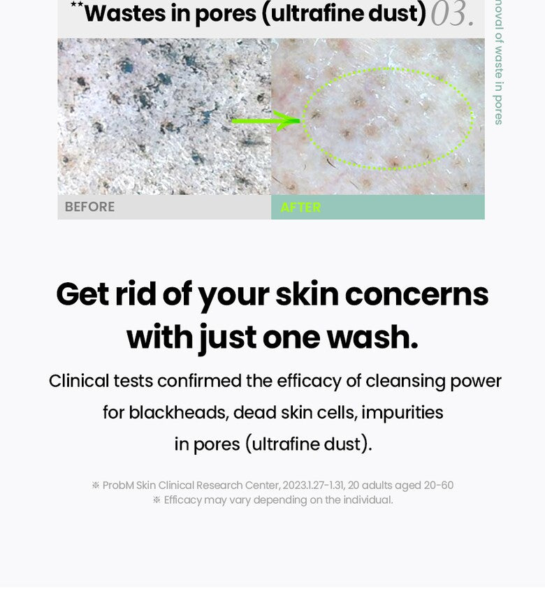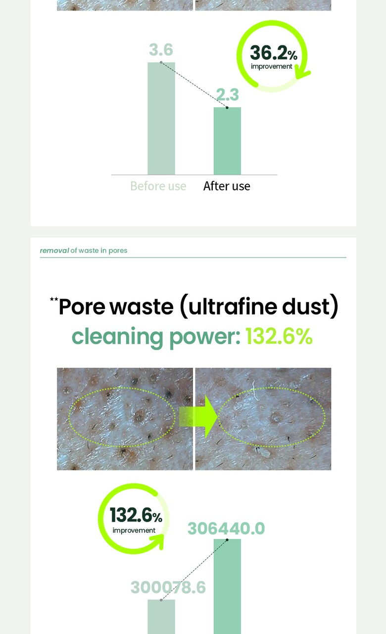 With just one use, blackheads were reduced by 36.2%, the cleansing ability of impurities in pores improved by 132.6%, and exfoliation was improved by 83.7%.