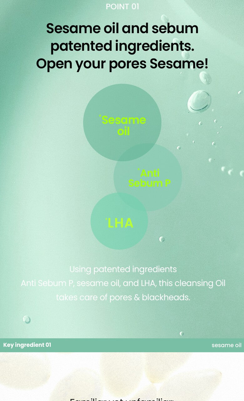 It is a non-irritating cleansing oil that blends sesame oil, patented sebum ingredients, and LHA to quickly melt away makeup on the skin and thoroughly cleanse blackheads, sebum, fine dust, and dead skin cells.