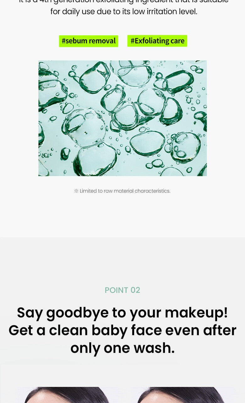 LHA, a 4th generation exfoliating ingredient that is less irritating and suitable for daily use, helps to control sebum and dead skin cells, leaving your skin soft after washing the face.