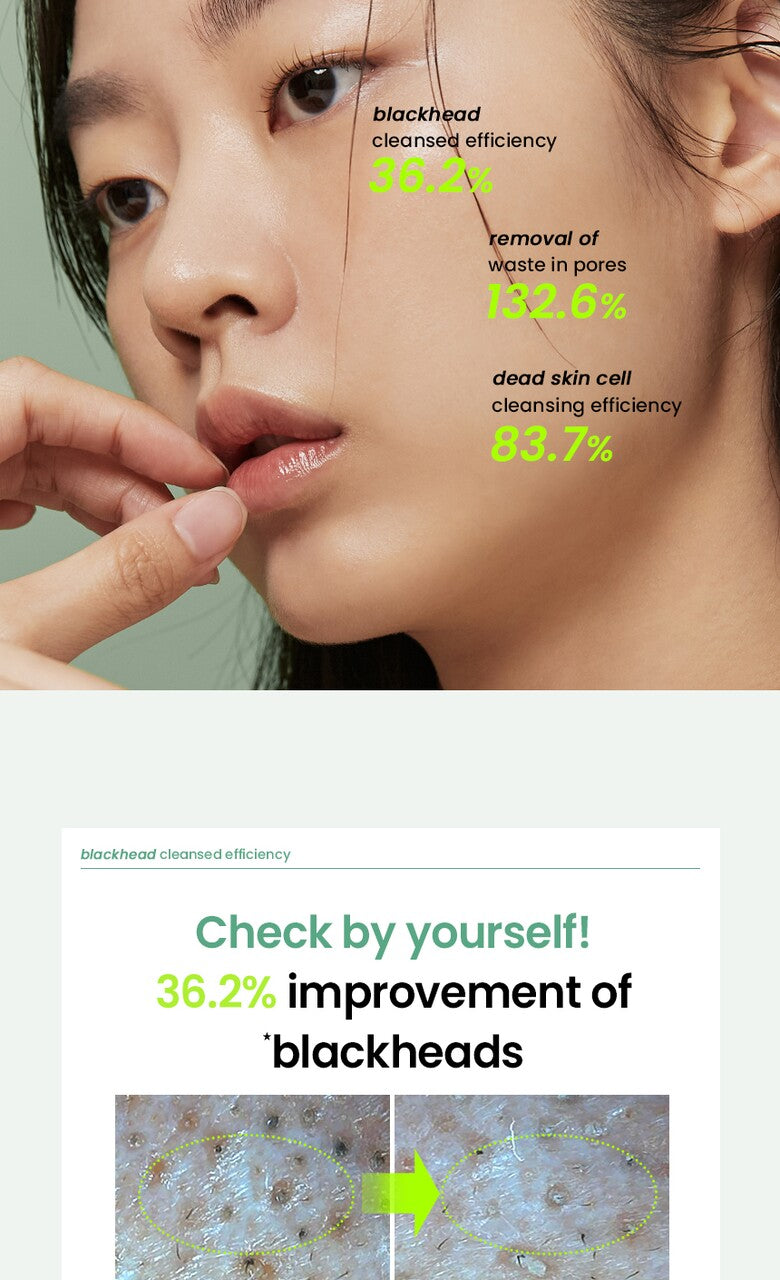 With just one use, blackheads were reduced by 36.2%, the cleansing ability of impurities in pores improved by 132.6%, and exfoliation was improved by 83.7%.