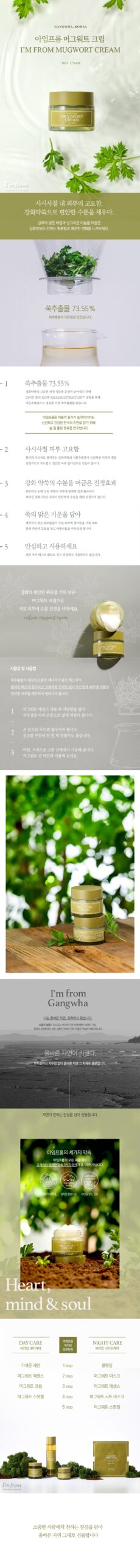 Moisturizing and Calming Effects of Ganghwa Mugwort Experience a refreshing and gentle cream texture that adheres closely to your skin. This cream purifies and deeply hydrates from within, offering a soothing and firming effect that leaves your skin feeling revitalized.
