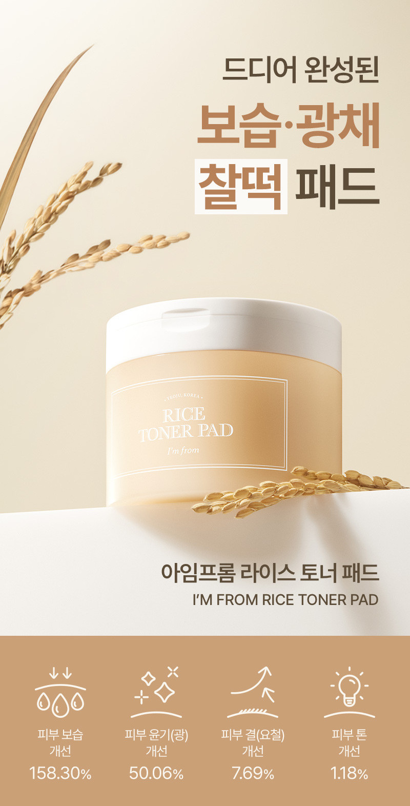 MoistuRICE & shine! The I’m From Rice Toner Pad is a moisturising and nourishing toner pad to help you achieve a radiant, glowing complexion, improved elasticity and enhanced texture. Rich in vitamins, minerals and antioxidants, Yeoju Rice naturally brightens and evens out your skin tone to reduce dark spots and hyperpigmentation, resulting in a radiant and glowing complexion. The triple-layered, highly-elastic round pad stretches to fit various areas, ensuring seamless adherence for effective skincare. This design locks in moisture tightly, providing your skin with the hydration it needs to stay smooth and glowing.