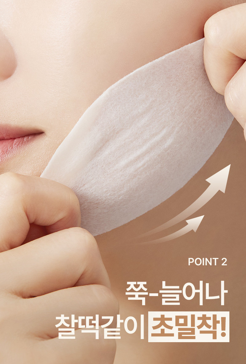 3). Stretch the toner pad to fit areas like forehead, cheeks, chin, and neck.