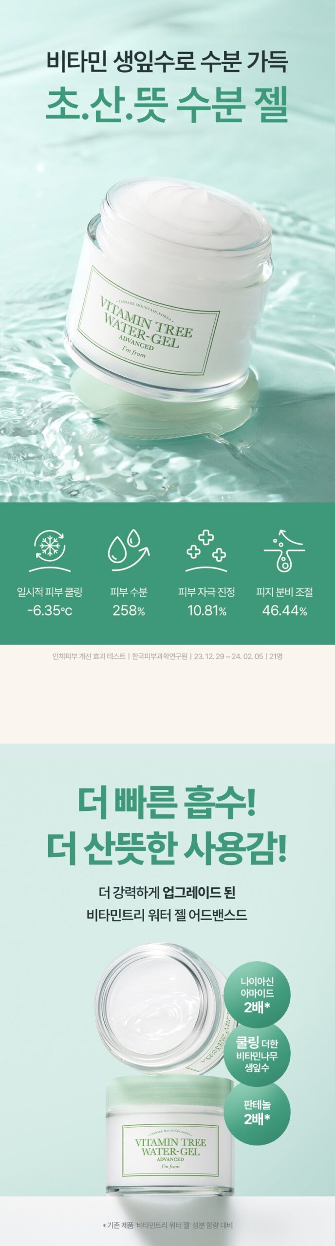 I have been using the I’m from Vitamin Tree Water Gel Advanced for about three weeks now, and I am genuinely impressed with its performance. The instant cooling effect is remarkable; applying it feels like a refreshing splash of cold water on my skin. With intense hydration that boosts moisture levels by up to 258%, my complexion has never felt more plump and dewy. Additionally, I’ve noticed a significant reduction in oiliness—around 46% less sebum production—which keeps me shine-free throughout the day. It absorbs quickly without leaving any sticky residue, making it perfect for daytime use or under makeup.