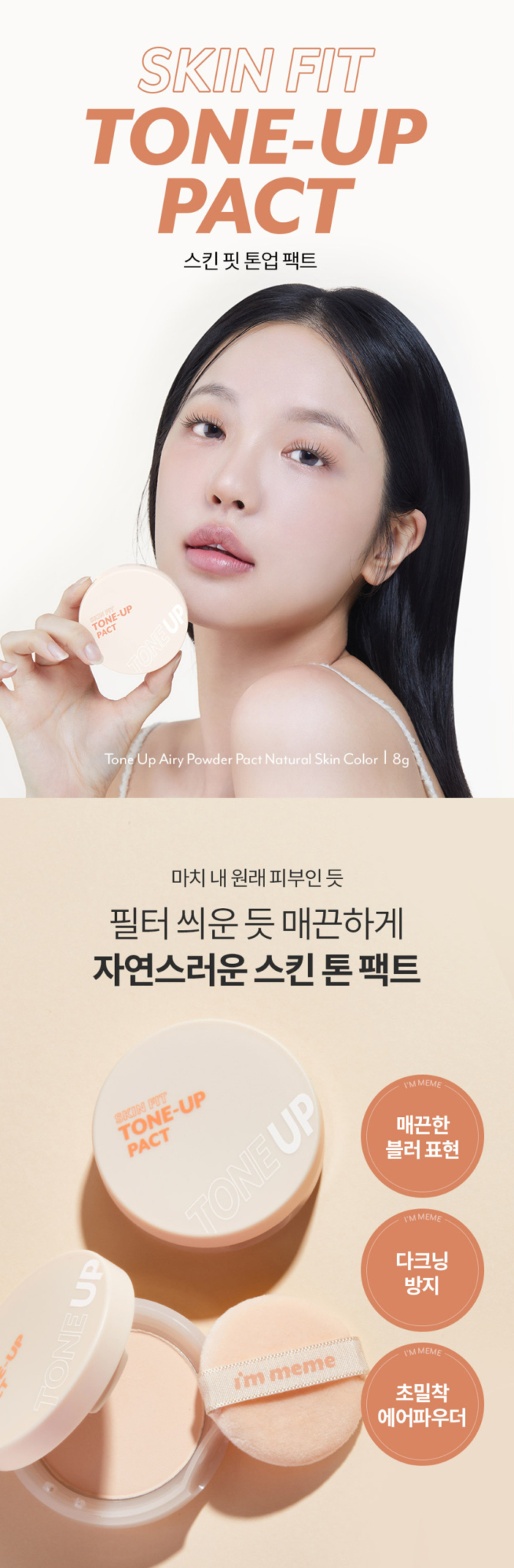 Instantly brighten and perfect your complexion with I’M MEME Skin Fit Tone-Up Pact. This multifunctional pressed powder delivers natural tone-up effects while setting makeup for a flawless, luminous finish that lasts all day.