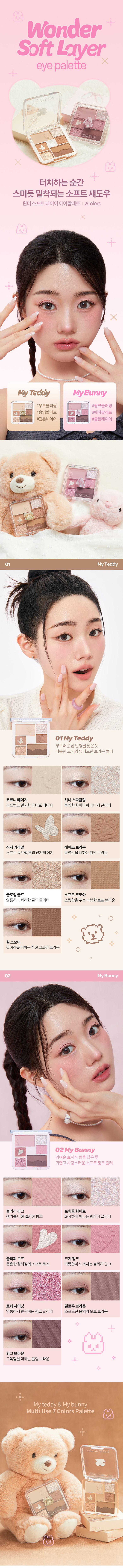 Create dreamy eye looks with I’M MEME Wonder Soft Layer Eye Palette. This adorable compact features 6 beautifully curated shades with embossed designs including butterflies, paw prints, and bunny motifs. Available in warm neutral and romantic mauve color schemes.