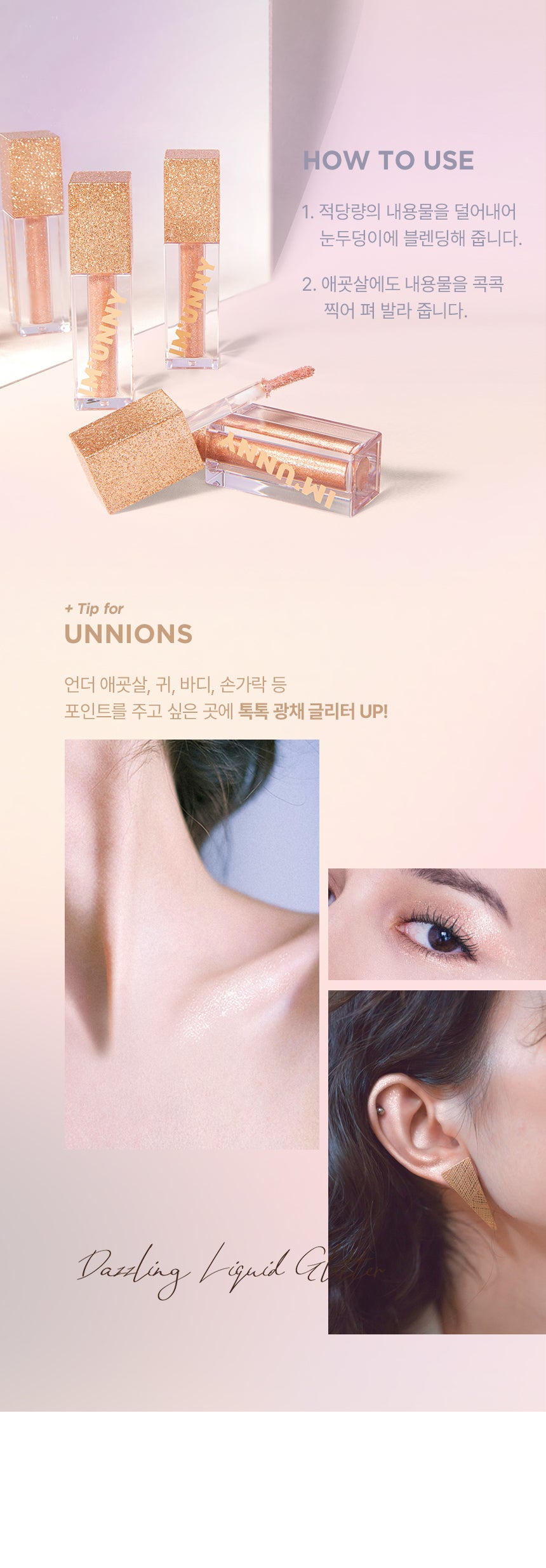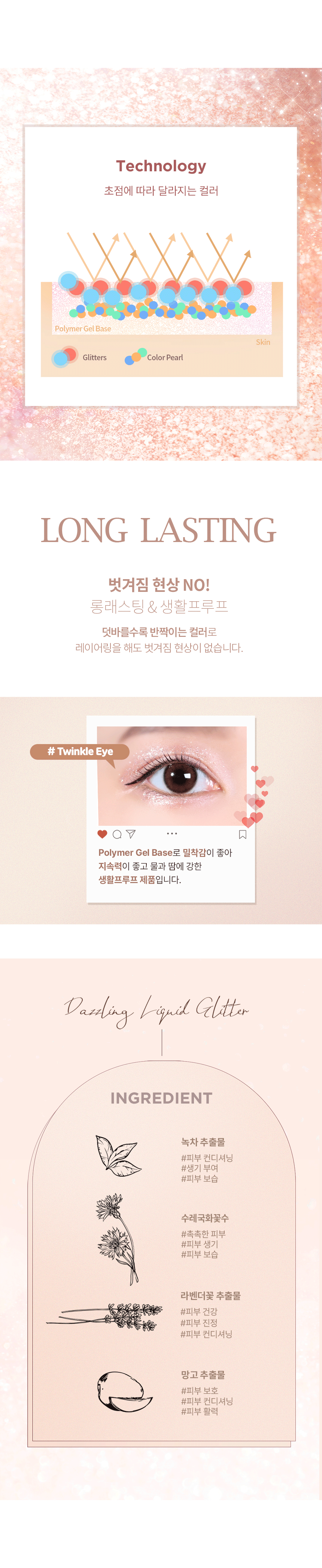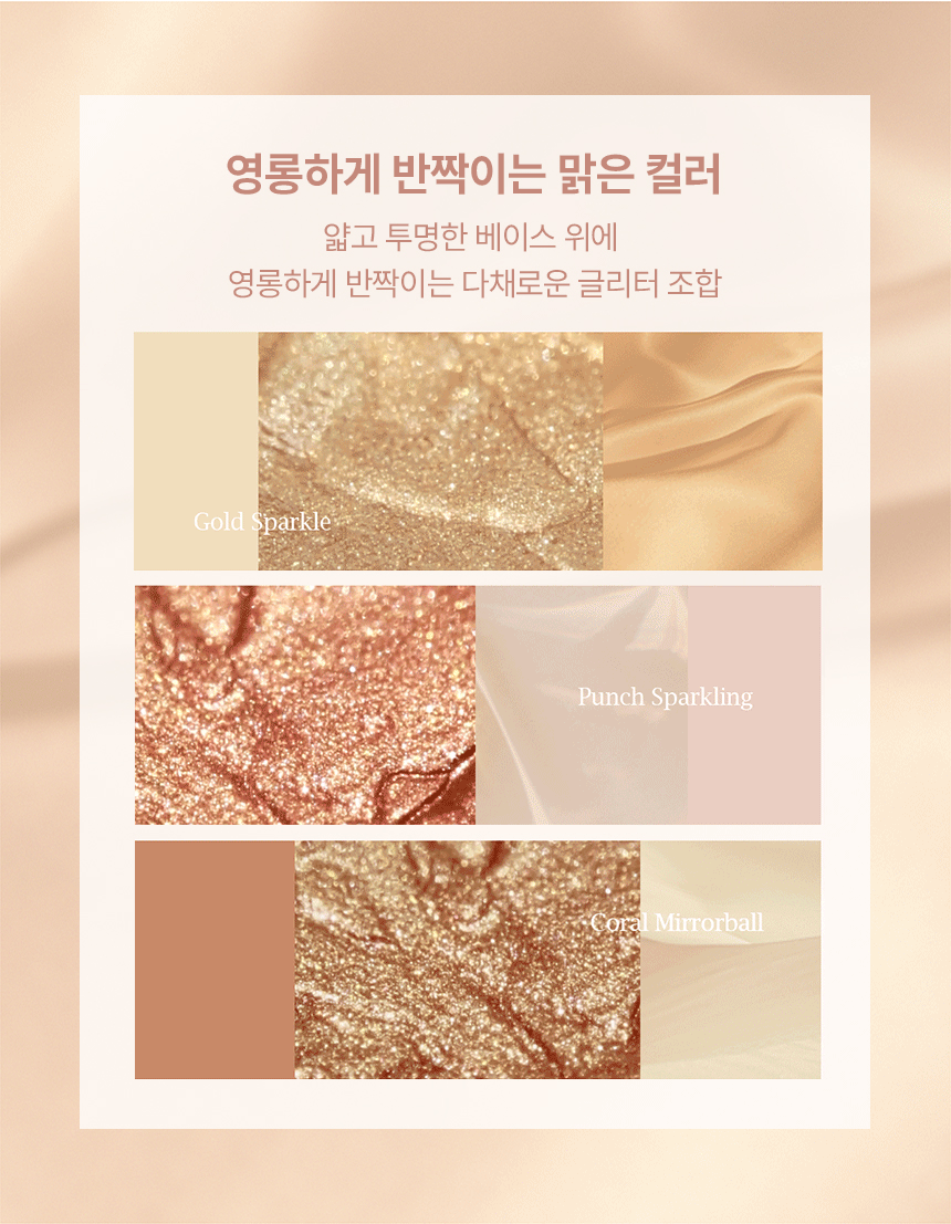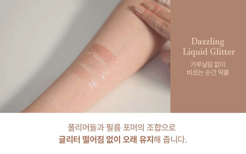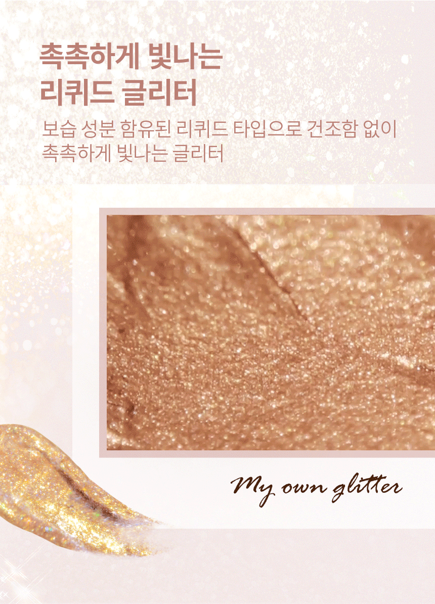 - Moisture-Rich: A liquid-type glitter that keeps the skin glowing and hydrated.