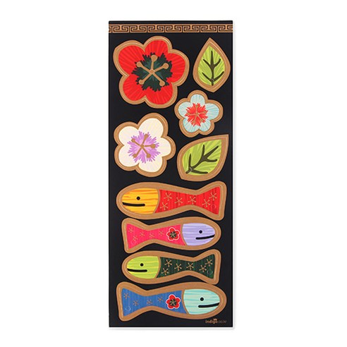 INDI.K Ink Bok Folk Painting Embroidery Rectangular Labels 10 pcs – Korean Blessing Minhwa Design