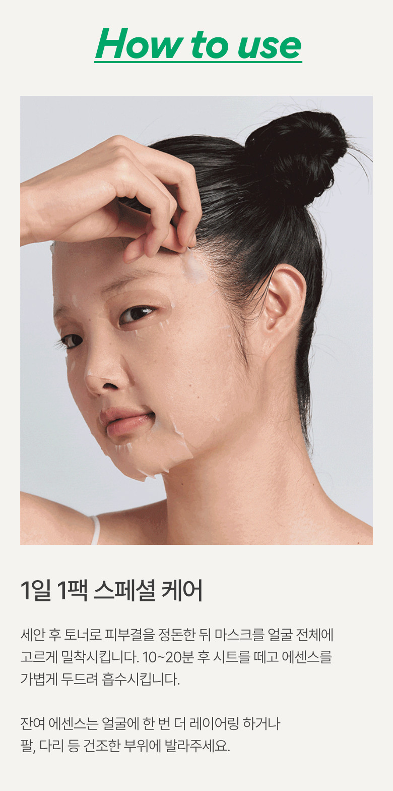 After 10 to 20 minutes, remove the sheet and lightly pat the essence for absorption.