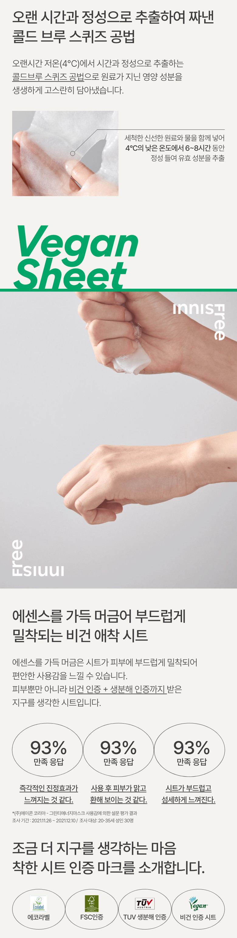 I’ve been using the innisfree Energy Mask and I am thoroughly impressed. The cold brew squeeze method really sets this product apart; it retains the nutrients from raw ingredients exceptionally well, which you can feel on your skin. After just one application, my complexion appeared brighter and more hydrated. I also appreciate that it’s a vegan sheet mask; this is crucial for me as someone conscious about clean beauty products. Each mask has provided immediate moisture when my skin felt dry and uneven. They are perfect for days when my skin feels irritated.