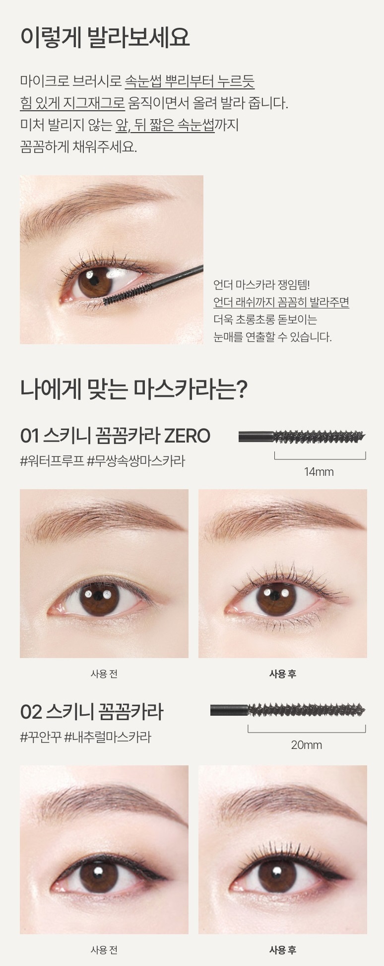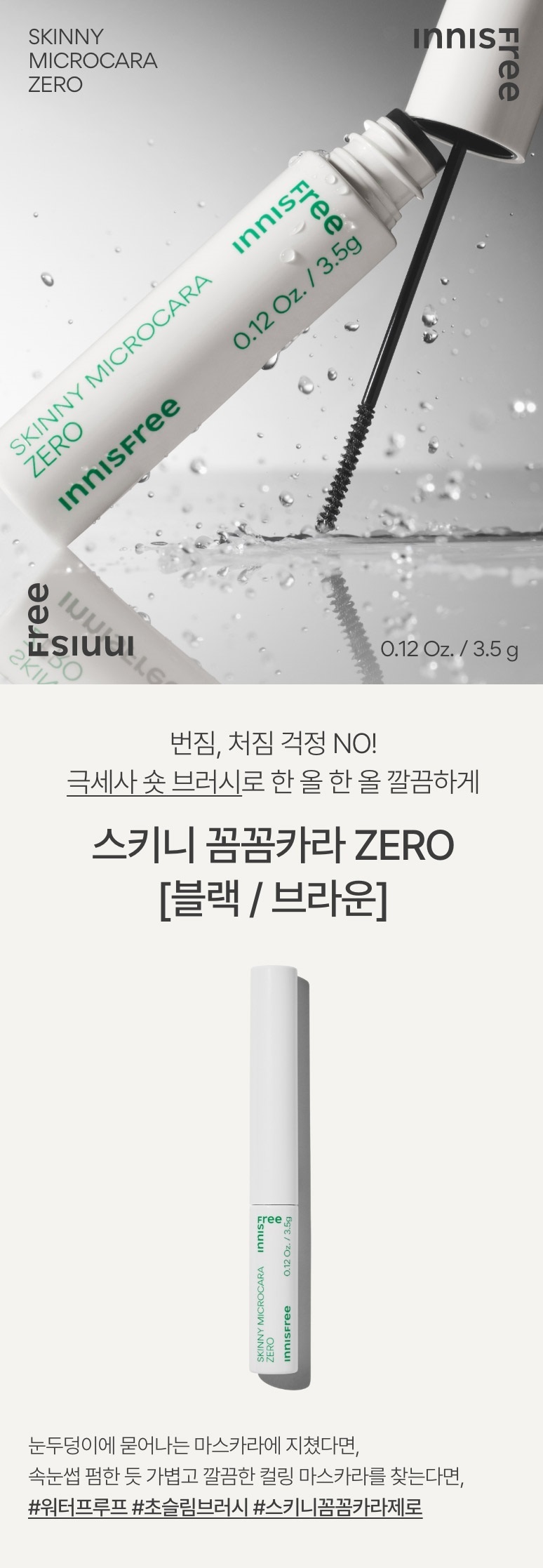 The Innisfree Skinny Microcara is a mascara with a slim, skinny brush that coats lashes from root to tip for a natural and defined look. The special double-coating system leads to remarkable wear, for mascara that will not run or smudge, but can be easily washed off with lukewarm water to prevent unnecessary rubbing and tugging of the sensitive eye area.