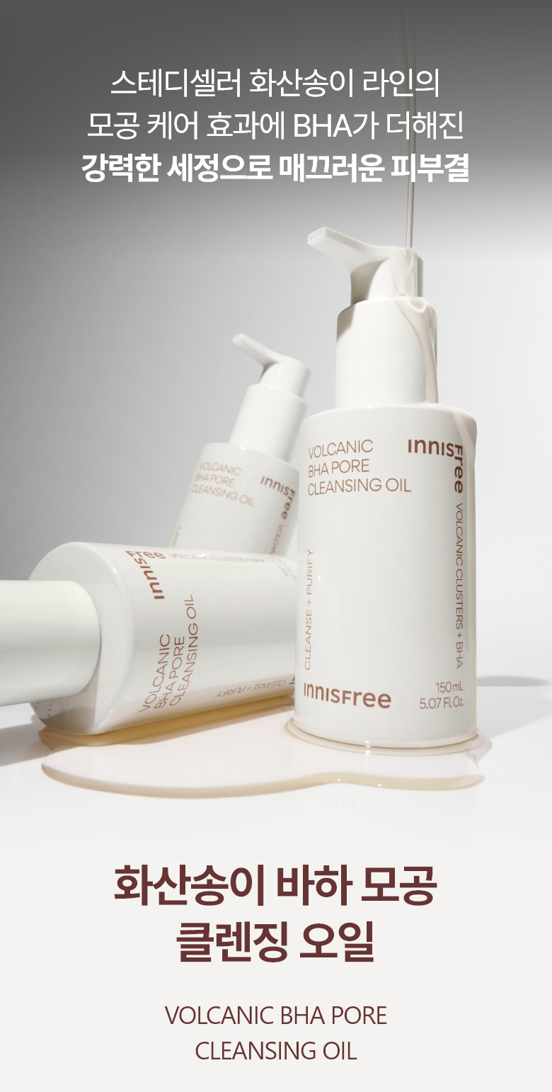 The Innisfree Volcanic Pore BHA Cleansing Oil is a cleansing oil formulated with Jeju volcanic cluster and BHA to remove excess sebum, blackheads and makeup residues thoroughly. Formulated with Volcanic Sphere Plus™ and Jojoba Seed Oil, it offers 7 times more powerful sebum absorption effect than the existing volcanic clusters. Also infused with BHA for a stronger cleansing and dead skin cell removal power.