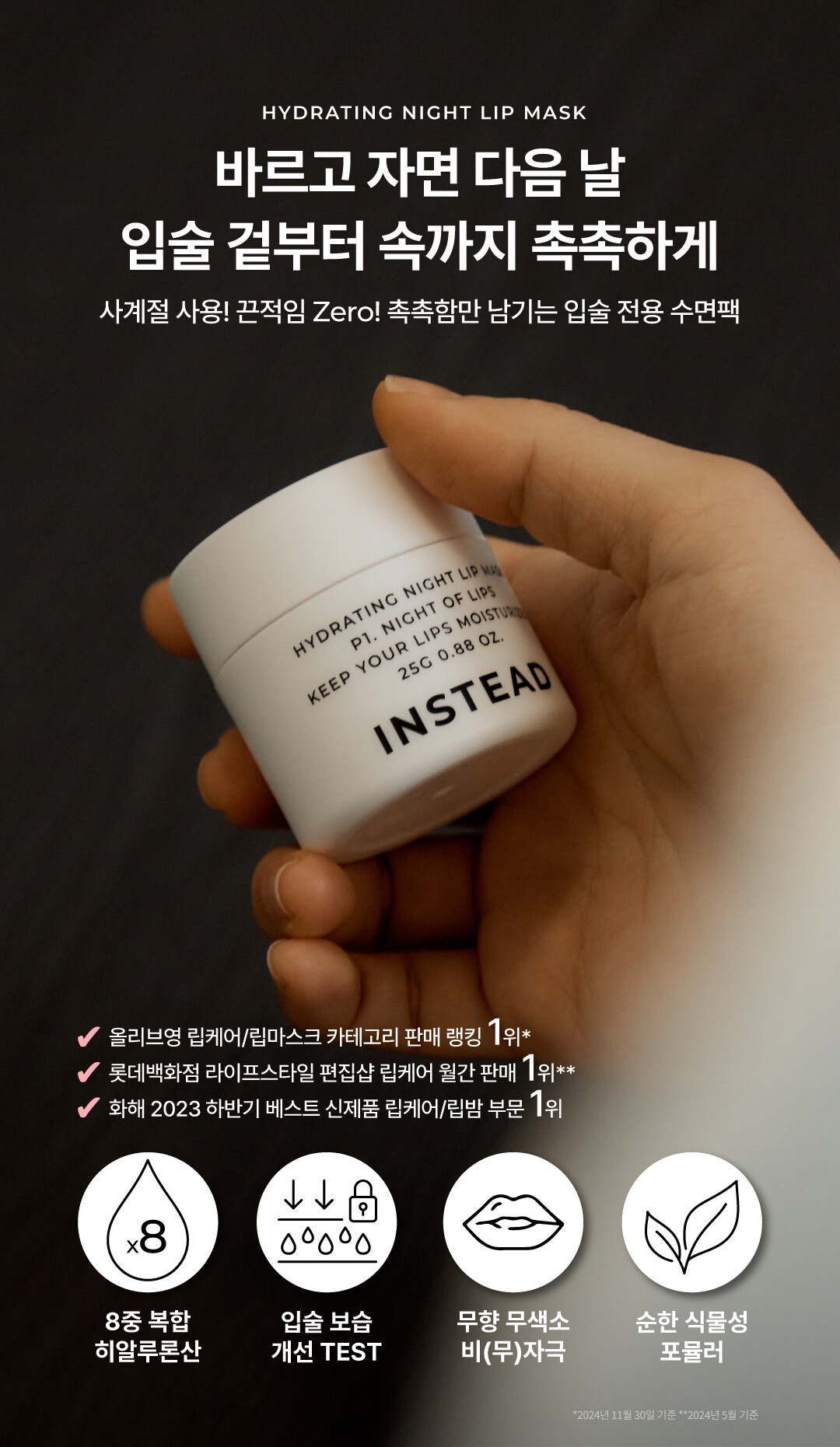 INSTEAD Hydrating Night Lip Mask — your nightly ritual for deeply moisturized, smooth, and healthy lips. Wake up every morning with lips that feel refreshed, nourished, and ready to glow.