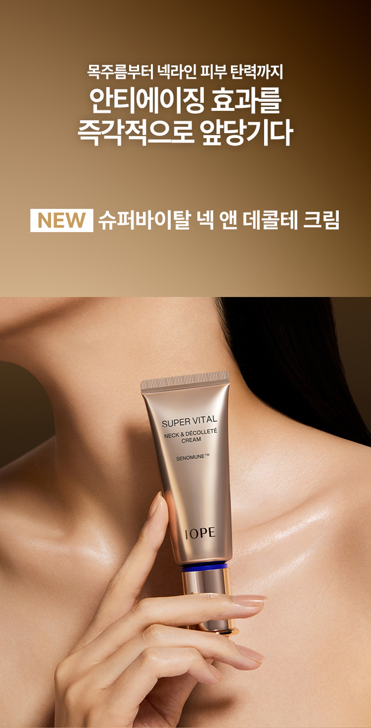 A high-performance neck and décolleté cream formulated with IOPE’s exclusive SENOMUNE™ anti-aging technology.