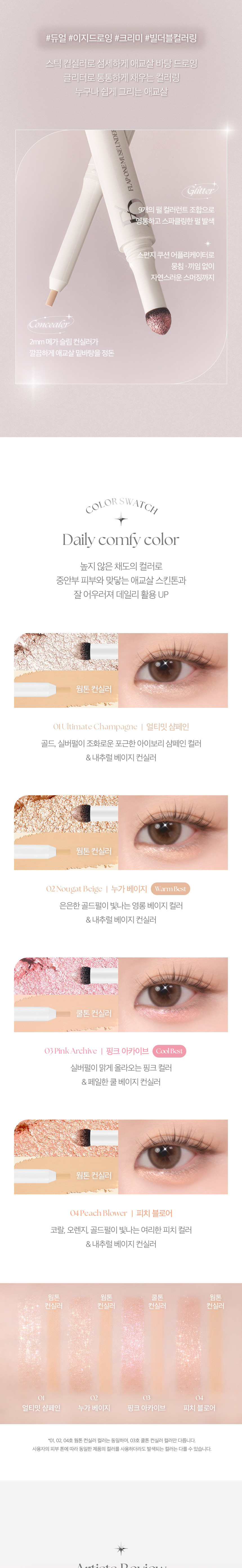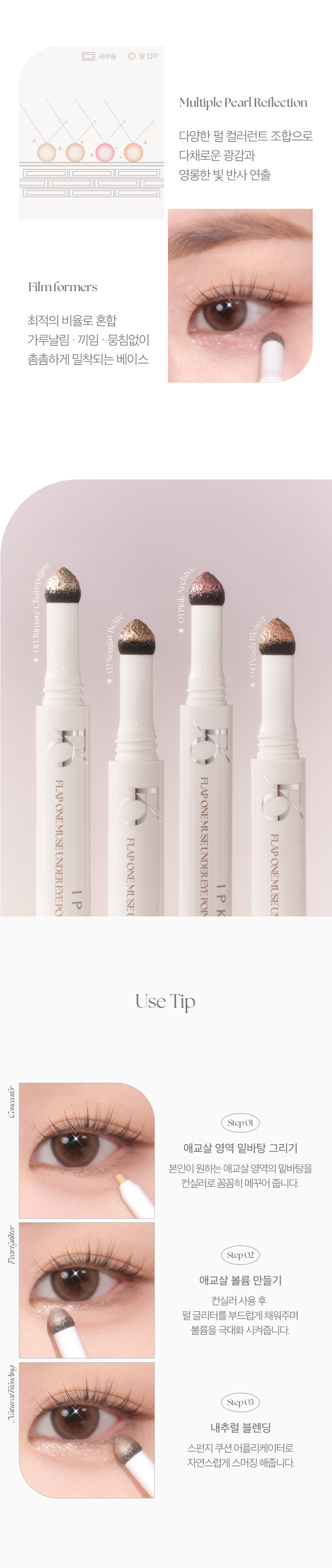 - 03 Pink Archive: A delicate pink shade designed to neutralize dullness and add a soft, rosy luminosity to your under-eye area. Perfect for fair skin with cool undertones.