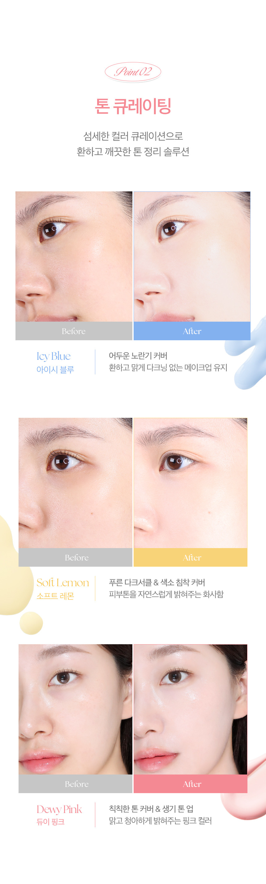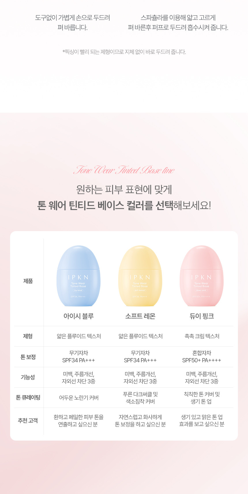 The IPKN Tone Wear Tinted Base goes beyond a simple primer, offering a sheer color coating that visibly brightens and evens out your skin tone. Its light and fluid texture blends seamlessly, adhering perfectly to your skin to ensure your makeup looks fresh and flawless without darkening. Experience the power of delicate color curation designed to perfect your unique complexion.