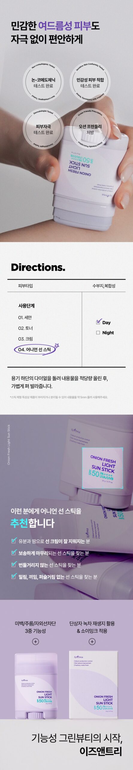 The Isntree Onion Fresh Light Sun Stick is perfect for anyone seeking a lightweight, effective sun protection solution that keeps oiliness at bay while improving overall skin texture.