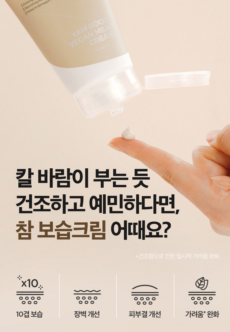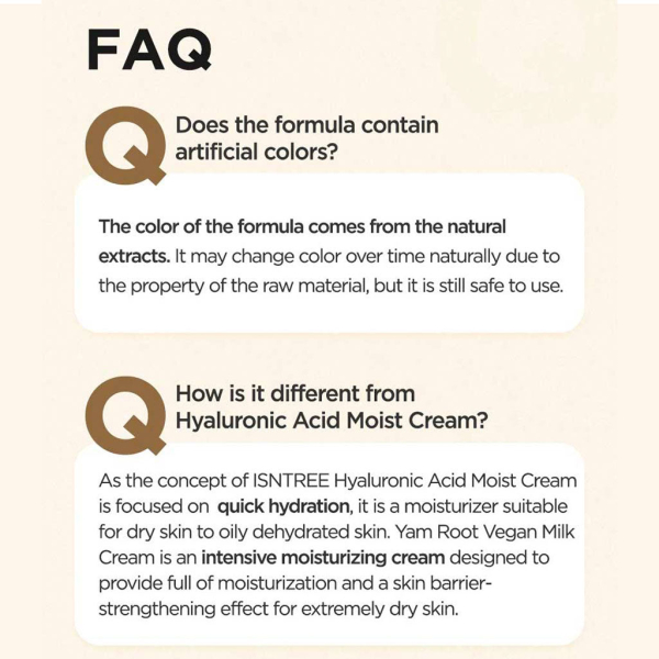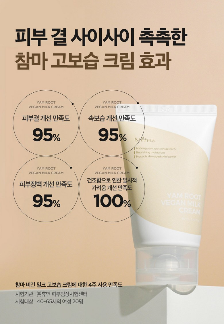 The Isntree Yam Root Vegan Milk Cream is an intensive moisturising cream infused with 57% Yam Root Extract from Andong, Korea, to deeply hydrate and replenish moisture. Also contains botanical Phyto Mucin, Vegan Milk Complex (derived from oat, rice, coconut and other plant-based ingredients) and 5-Ceralipid to protect, moisturise and strengthen skin. The rich and moisturising butter cream texture deeply penetrates into skin and keeps you moisturised all day.