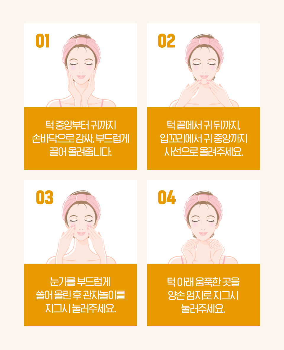 1. From the center of the chin to the ears, wrap it with your palms and gently pull it up.