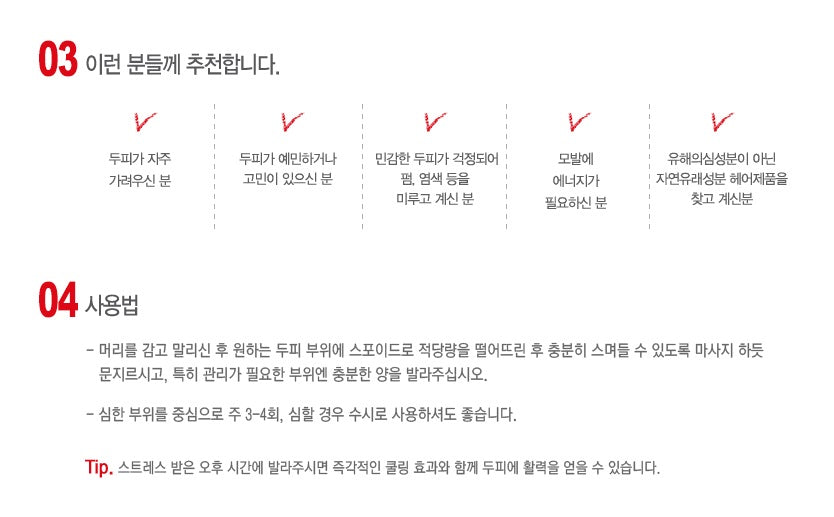 A highly-concentrated ampoule of Eosungcho+ Perilla leaf + Green tea gives powerful energy to a loose scalp!