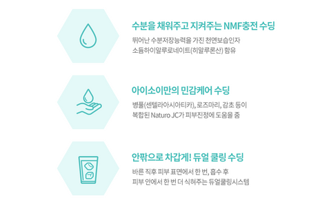 It helps to quickly cool and soothe sensitive skin that has become heated due to various causes such as UV rays and indoor and outdoor temperature differences.